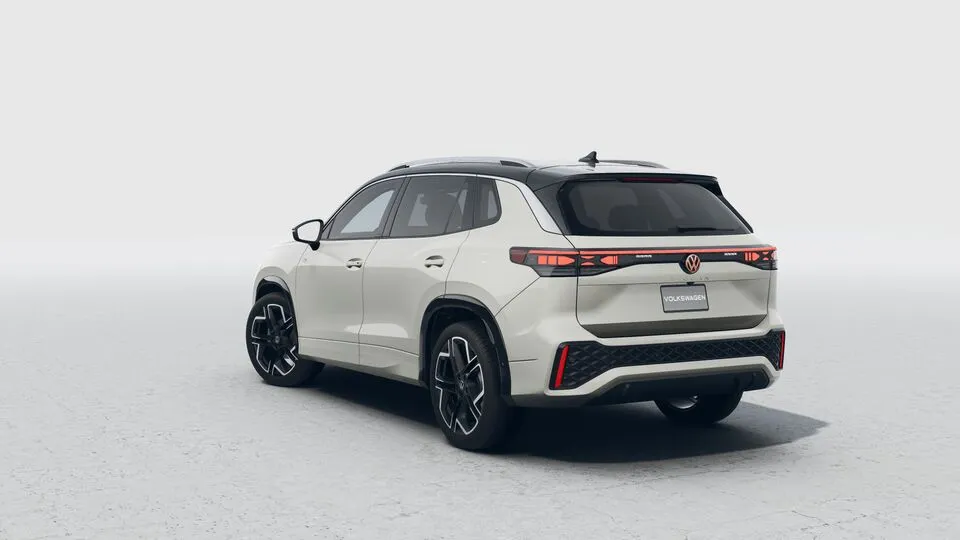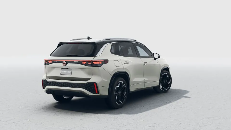 La parte trasera del Nuevo Tiguan 2025 se destaca por un diseño sofisticado, con emblemas Volkswagen iluminados.